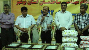 پس از آن به ترتیب تیمهای چهارم، سوم، دوم و اول مسابقات هر کدام به ترتیب جوایز و جام های مقام های به دست آورده خود را از دست مهندس سنائی دشتی و دیگر اعضای هیئت مدیره محترم سازمان دریافت نموده و بدین ترتیب سومین دوره مسابقات فوتسال جام رمضان سازمان نظام مهندسی ساختمان استان بوشهر به شرح ذیل به پایان رسید: